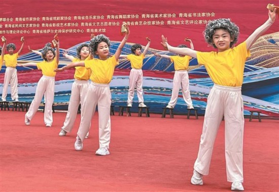 當戴著灰白假發的小朋友登台亮相,頓時引發了全場的歡呼聲。兒童音樂快板《阿娘們的閑話》將家長裡短演繹得妙趣橫生。“我們這個表演團隊的平均年齡僅8歲,其中最大的演員9歲,最小的才5歲。”青海小戲骨藝術培訓學校的老師在台下邊提醒學生邊介紹道。