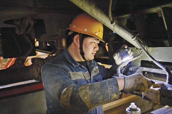 檢修現場,作業人員對機車車鉤、雨刮器、牽引杆等關鍵部件進行精細化檢測,並運用最新系統實時監測運行參數,同步開展制動系統、受電弓碳滑板等專項維護。技術人員協同作業,嚴控檢修進度與質量。近年來,青藏鐵路以科技賦能檢修流程,強化防火防寒措施,為春運期間高原鐵路運輸筑牢安全屏障。