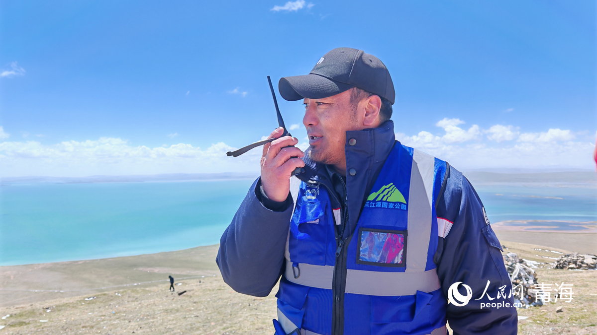 站在海拔4610米的措哇尕则山顶峰,便能俯瞰扎陵湖、鄂陵湖,目之所及便是格日杰布以及擦泽村生态管护队的管护范围。“我每天都要来措哇尕则山顶巡护。”格日杰布家住玛多县,距离巡护区域单程90余公里,在巡护区域,格日杰布或是举着望远镜观察远处的动物,或是拿着对讲机与其他管护员沟通,他对这片土地再熟悉不过,哪片草地草密草疏,哪片湿地常有鸟类栖息,格日杰布都如数家珍。作为管护队队长,格日杰布不仅要管护好自己的管护区域,还要监督、协调其他管护员干好管护工作。