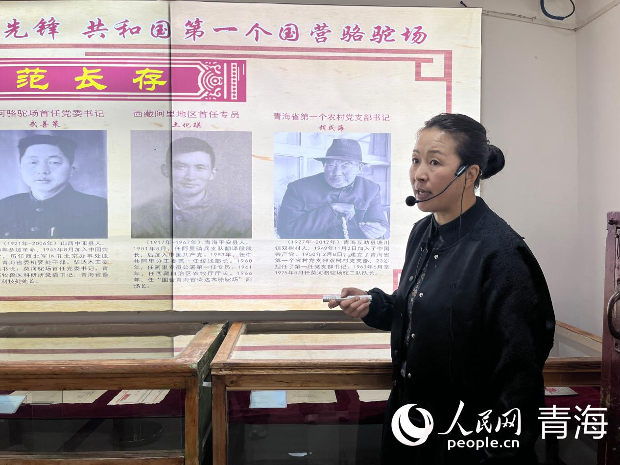 讲解员程建玲正在讲述驼工历史。实习生 张秀青摄