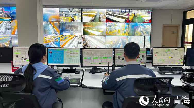 盐湖股份生产监控中心,工作人员通过智能系统实时监控、操作生产车间。实习生 马司宇摄