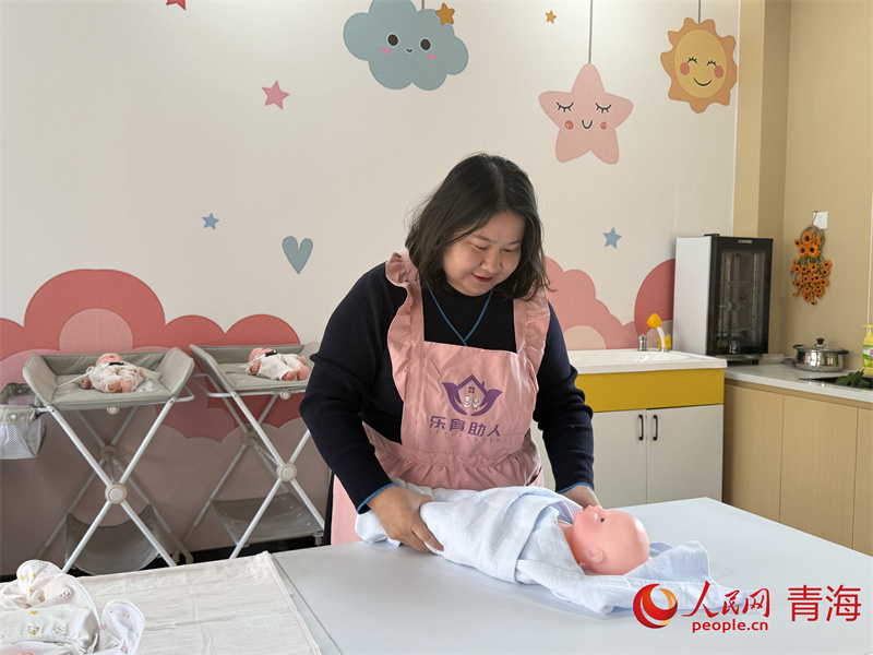 王菊文正在开展育婴技能实操教学。人民网 马可欣摄