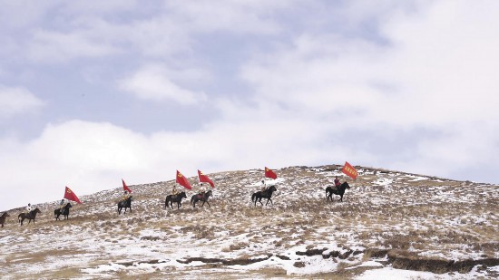 黄南河曲草原上马背上的那“一抹红”。通讯员 德吉拉毛摄