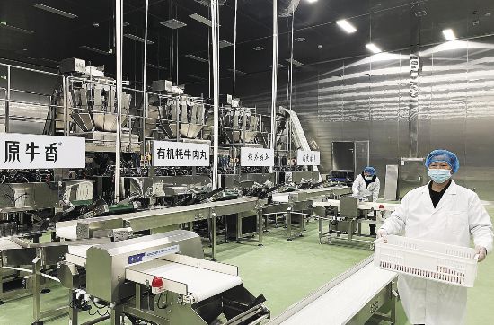 “从牧户和合作社订购的牦牛,进入我们的屠宰车间后就直接送到了生产线上。通过‘速冻螺旋急速锁鲜’技术,3个多小时产品就可以运送到储藏车间。在保留食材原有品质的同时,大大提升了生产效率。”生产总监杨艺勇说。